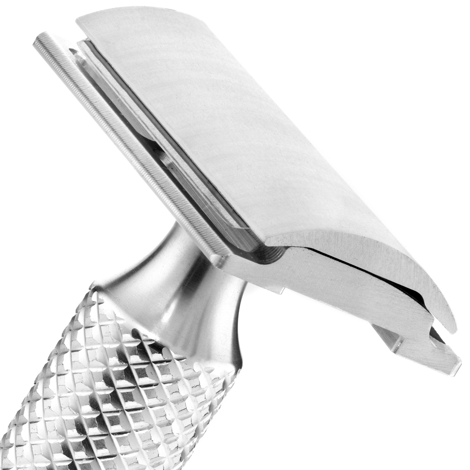 The Aluminum Slant Razor is a one-of-a-kind slant razor with a slight twist. It is beautifully crafted from 6061 T6 aerospace grade aluminum. A blade gap of .86 for a close, comfortable shave! It's easy to maneuver with a slim head. It's also great for beginners, head and body shavers as the ends of the blade are completely covered to avoid knicks and cuts. If you are a lifelong DE shaver or new to wet shaving, this razor is an excellent razor to shave with.